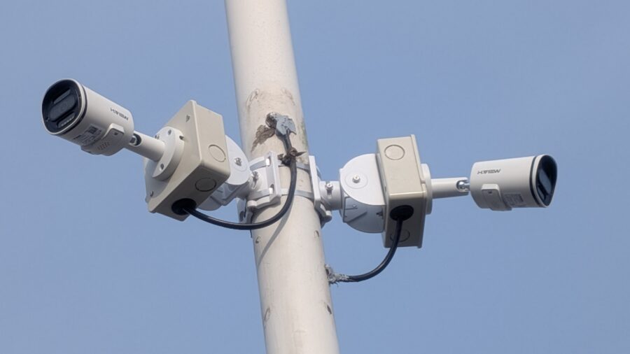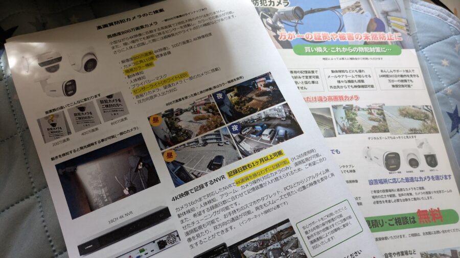 今回は、800万画素のカラー暗視カメラと180度見渡せる魚眼レンズを搭載したカメラを取り付けました。